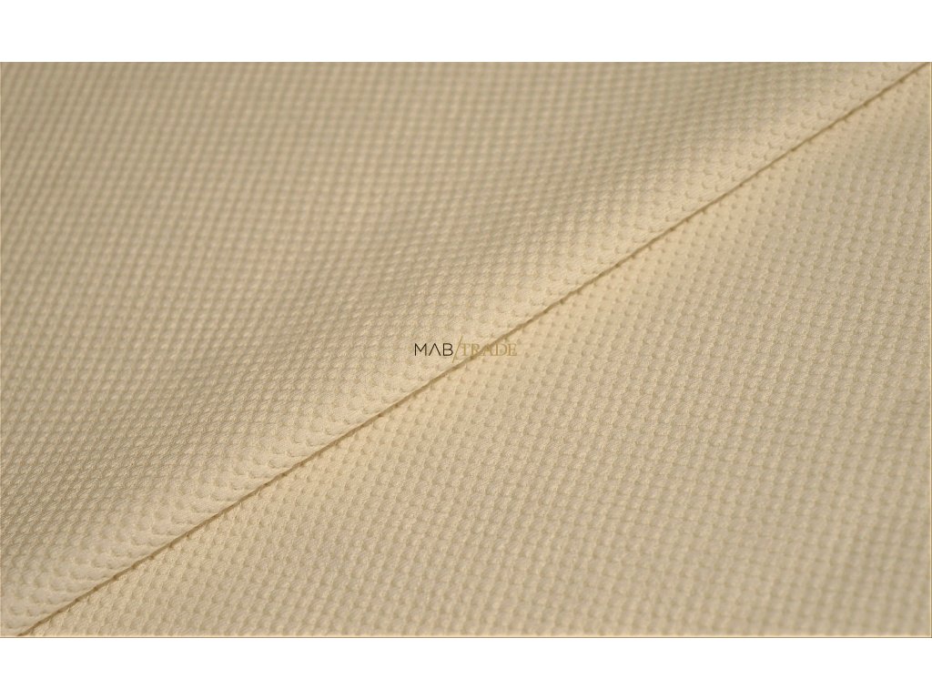 Elastická teplákovina (výplněk) s 3D strukturou v sisalové barvě. Velmi příjemný materiál vhodný na mikiny, sportovní šaty, volnočasové oblečení, nákrčníky atd. Díky elastanu je vhodná i na přiléhavější oděvy .