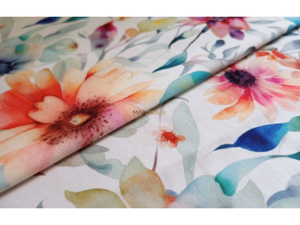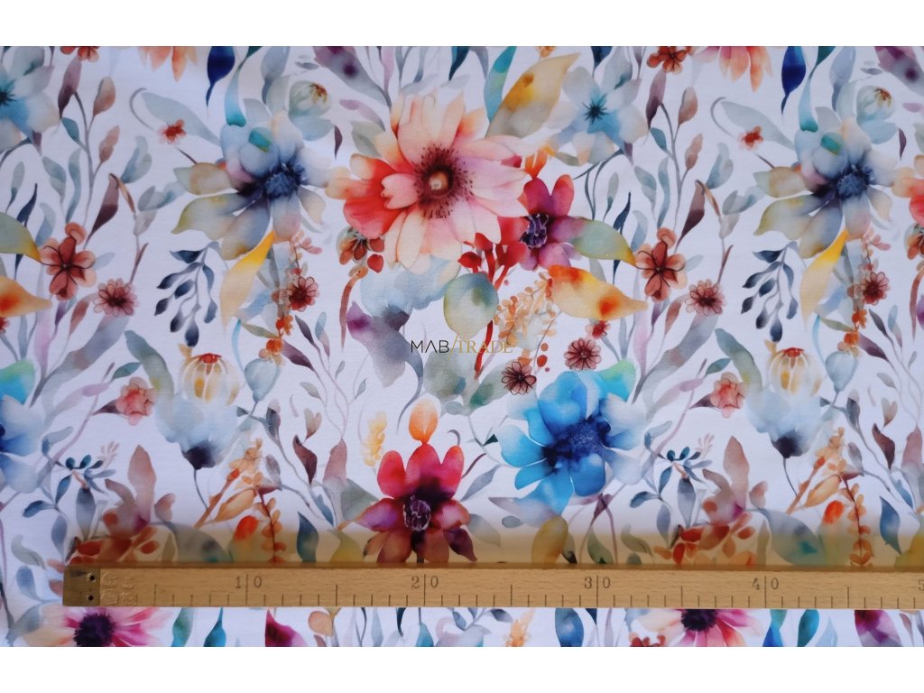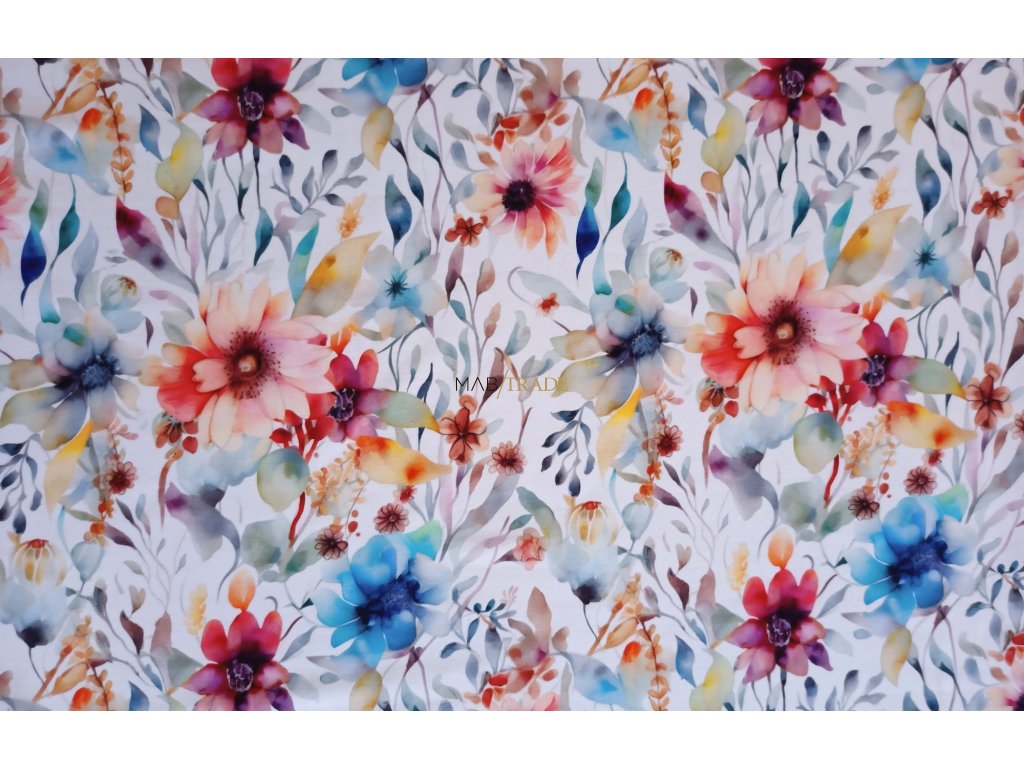 Elastická teplákovina Digi tisk Akvarel květ Kód 4842-4867