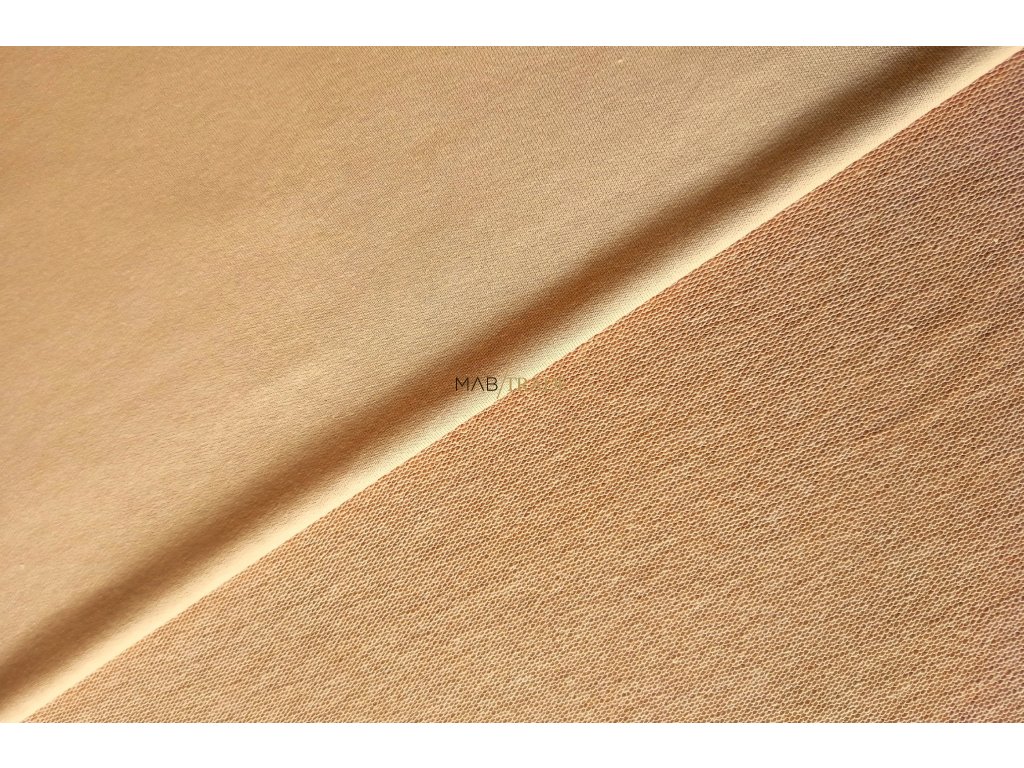 Výplněk třínitka nepočesaná s polyesterem v barvě světle béžové, je vhodná na tepláky, mikiny, spor. šaty, soupravy, volnočasové oblečení, dět. oděvy atd. Je nepočesaná a z rubu má smyčky.