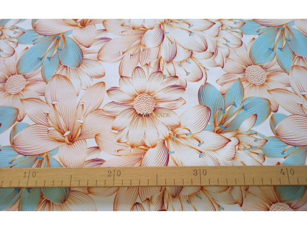 Bavlněný úplet - elastický jednolíc digi tisk Zlatý květ Kód 2903-7322